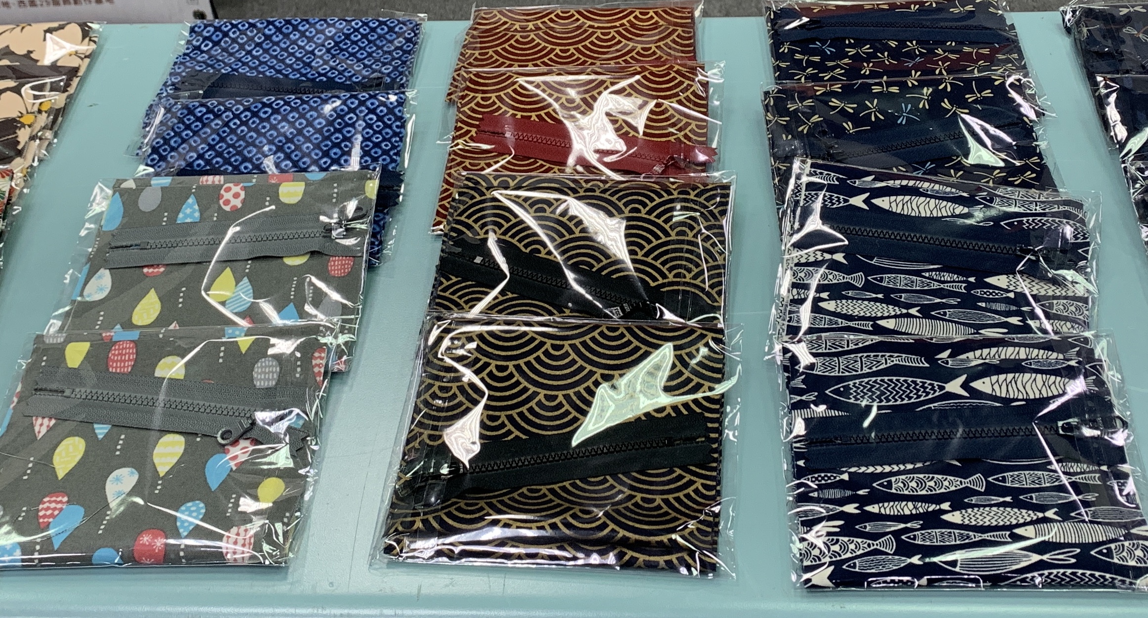 材料③:材料包,包含:已裁減好的布料、拉鍊、鈕扣。(照片中的材料包尺寸為21cm*75cm,完成品為7.5cm*10cm,因每人的手工技巧不同,因此實際縫製結果尺寸會有些微誤差。)