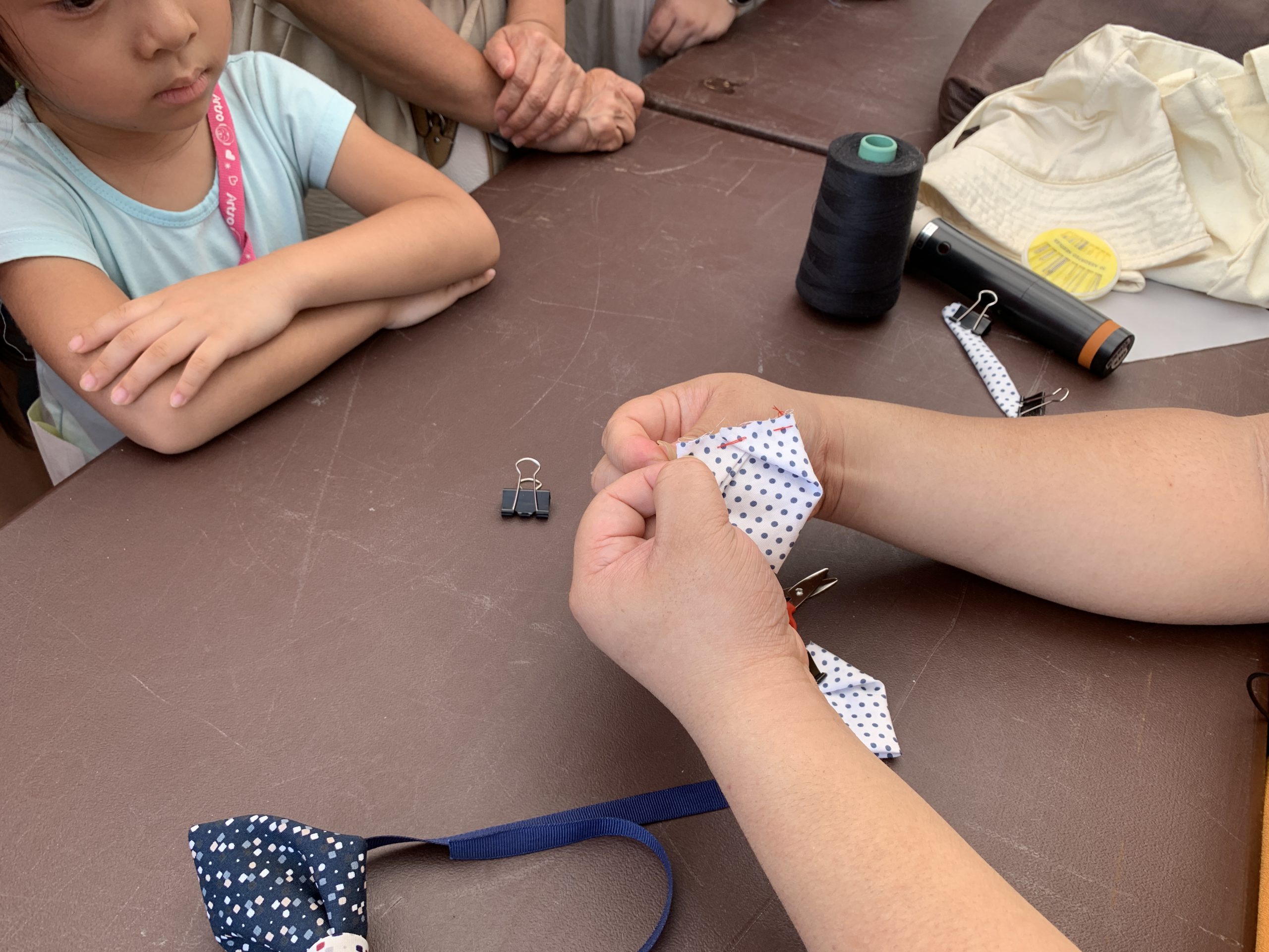 以拼布的手法,將零碎布料組合起來,縫製成一個專屬自己的百搭手作領結。台北市西服同業公會主要推廣「手工西服」,每一套西服都是量身定做、獨一無二,穿著手工西服的人都能展現出合身且品味獨特的一面。百搭手作領結主要以西服配件作為發想,開發出百搭手作領結,符合西服公會一貫的「量身定做」理念,讓民眾自己做出獨一無二的領結。
