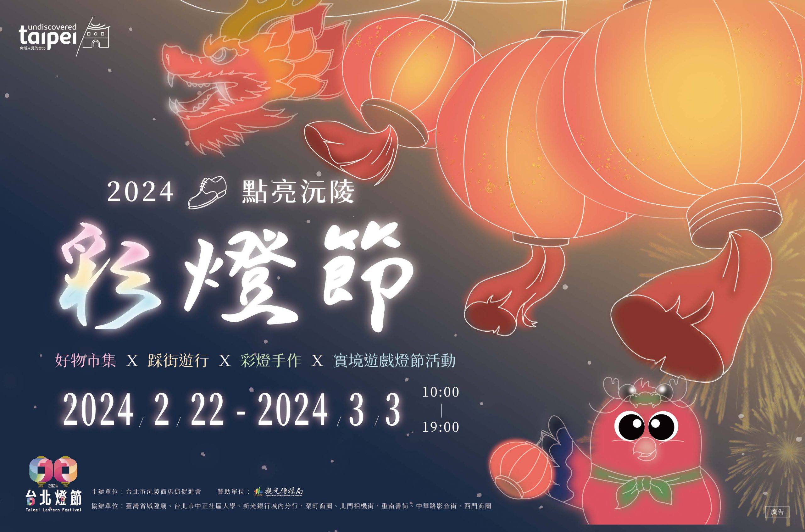 今年的「點亮沅陵彩燈節」主視覺設計就以沅陵街天空上的「翔龍彩燈」為主題,再加上去年剛成為代言人的「小沅寶」,由小沅寶手提燈籠、頭戴龍型帽,形成一幅帶著大家一起「龍徠沅陵」的意象,希望大家今年元宵節「攏來沅陵」參加彩燈節活動。