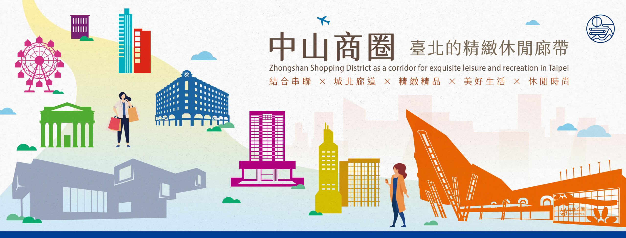 中山商圈坐落於臺北市中心,自日治時期以來一直是臺北的休閒地區。二戰後美國駐臺軍事援助顧問團的成立,使得中山商圈融合台、日、美文化。中山北路是日治時期的敕使街道,現已成為城北無圍牆博物館的藝文軸線。圓山花博公園作為佔地寬廣的都會型公園,是市民重要的休閒與運動場所。「中山」與「圓山」兩個概念的融合,代表著中山商圈這個長形區塊背後發展的精神與文化,逐步發展成為臺北的精緻休閒廊帶。