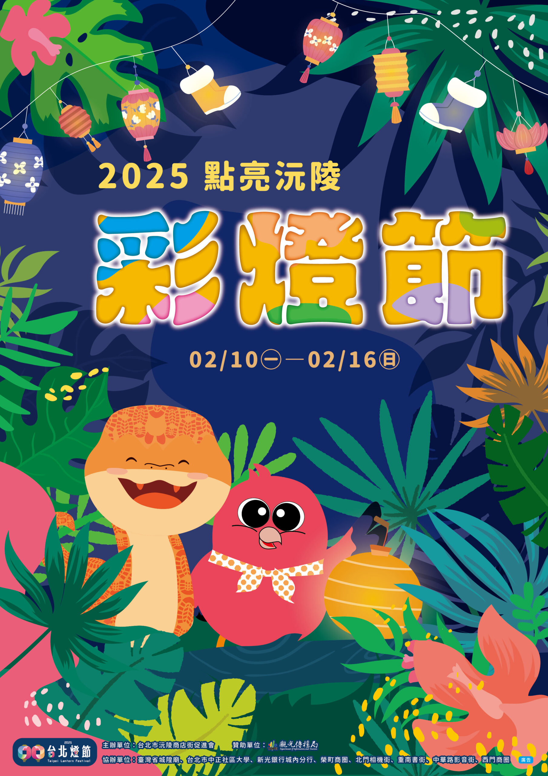 沅陵街每年農曆年前都會在天空掛上象徵吉祥的「巨型天燈」,並搭配沅陵彩燈節主題,掛上不同風格的彩燈,早已成為國內外旅客拍美照的景點。今年是蛇年,我們特地讓沅陵街的吉祥物「小沅寶」帶著小蛇一起出現,整個背景以叢林為主,也象徵著蛇在叢林中悠然自得的氛圍。蛇的身上還有「鞋印」的花紋,代表著以沅陵街的「鞋街」形象。整個主視覺也將用到今年彩燈節打卡牆上,真實地展現出來。