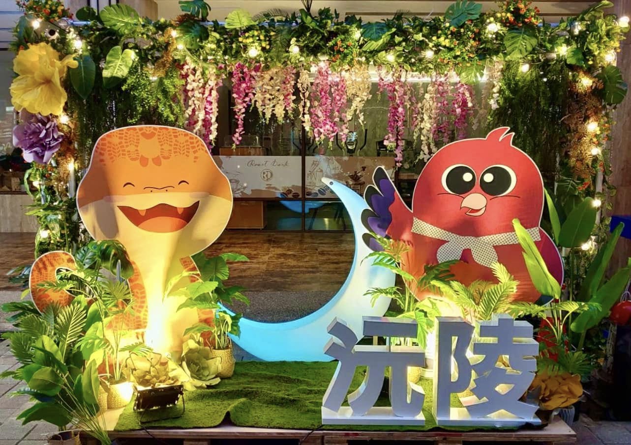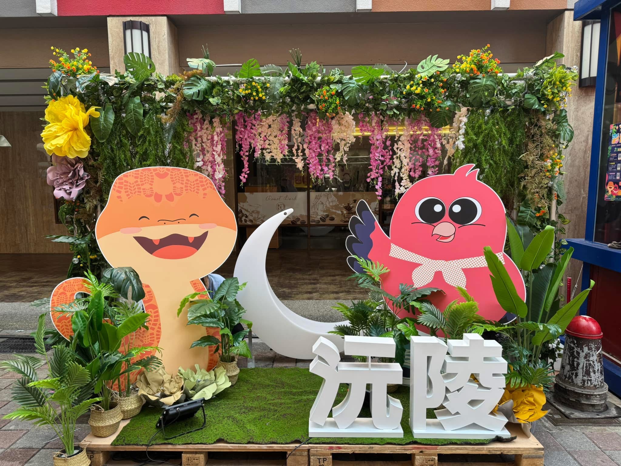 配合2025台北燈節「蛇來運轉」活動,沅陵街燈區以蛇為主題,將沅陵街的吉祥物「小沅寶」及「吉祥蛇」結合在一起,設置4米*3米「小沅寶叢林彩燈」打卡牆,提供民眾在活動期間可進行拍照及打卡。其中,蛇的身上設計「鞋印」條紋,加強沅陵「鞋街」的意象,並採用「叢林」造景,讓「吉祥蛇」在叢林中若隱若現。除了符合蛇的生長環境外,也提高蛇的神秘感。晚上點燈後,也營造出「蛇年燈節」的夜間美感。
