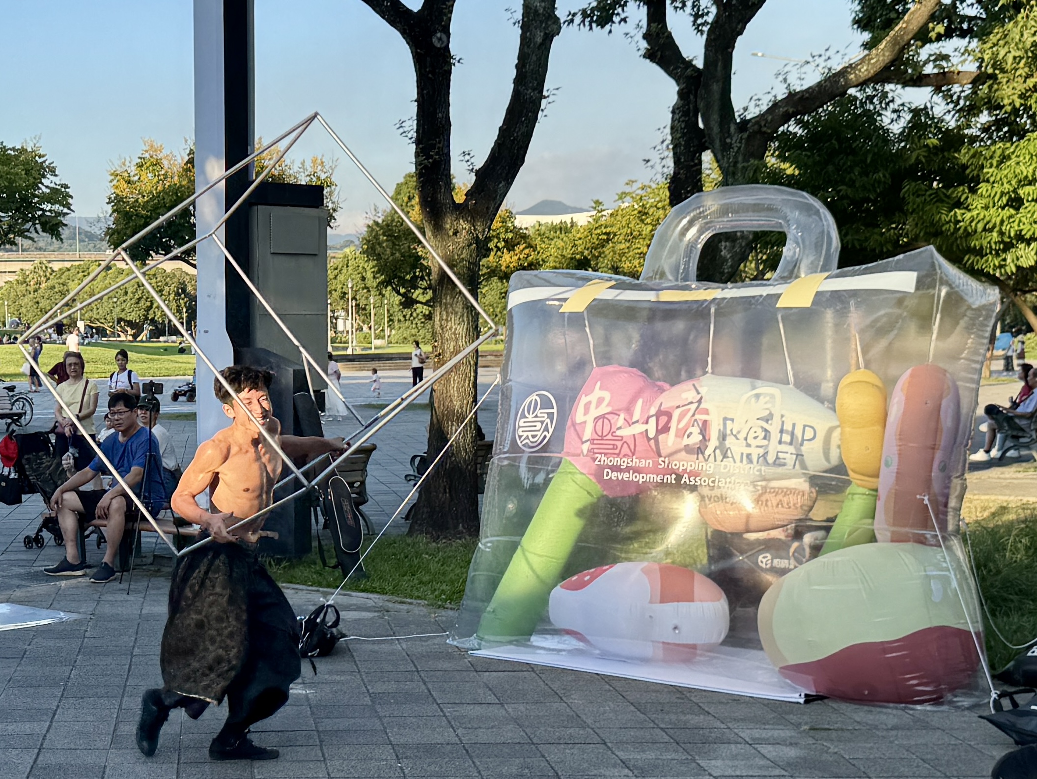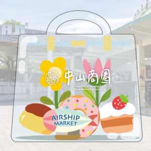 這座位於圓山花博的「透明充氣氣球裝置」,是一個結合市集形象、品牌識別與拍照互動的創意視覺裝置,透明提袋造型象徵「購物」與「逛街」,將整個商圈的特色濃縮進一個視覺容器中,就像把中山的生活風格「打包帶走」,也呼應中山商圈以街區漫遊、生活選品、市集文化為核心的定位。